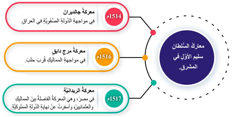 - معركة مرج دابق (1516م) ضد المماليك قرب حلب – انتهت بضم بلاد الشام.