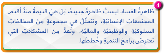 - البطاقة الرابعة: الفساد ظاهرة قديمة تعيق التنمية وتتطلب مواجهتها.