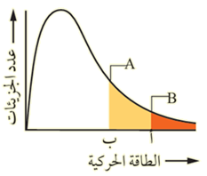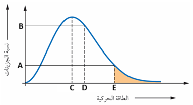 ادرس الشكل الآتي الذي يمثل العلاقة بين الطاقة الحركية وعدد الجزيئات لسائل ما عند درجة حرارة معينة ثم أجب عن السؤال الذي يليه: